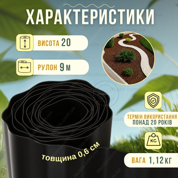 - Гнучкий і зручний у використанні – пластикова конструкція дозволяє легко формувати вигини будь-якого радіусу відповідно до дизайну ділянки.