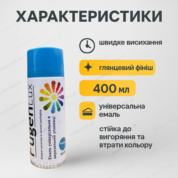 Характеристики- Тип продукту: універсальна емаль-аерозоль