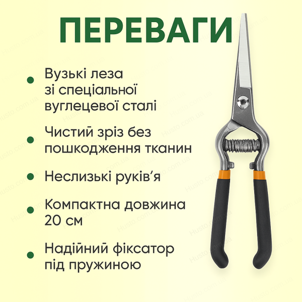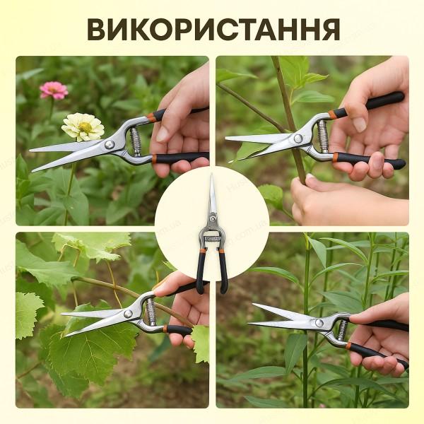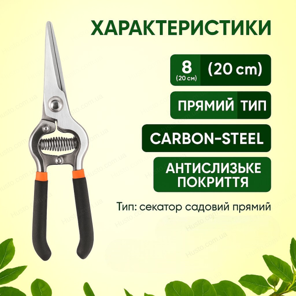 Характеристики- Тип: садовий секатор з прямими вузькими лезами
