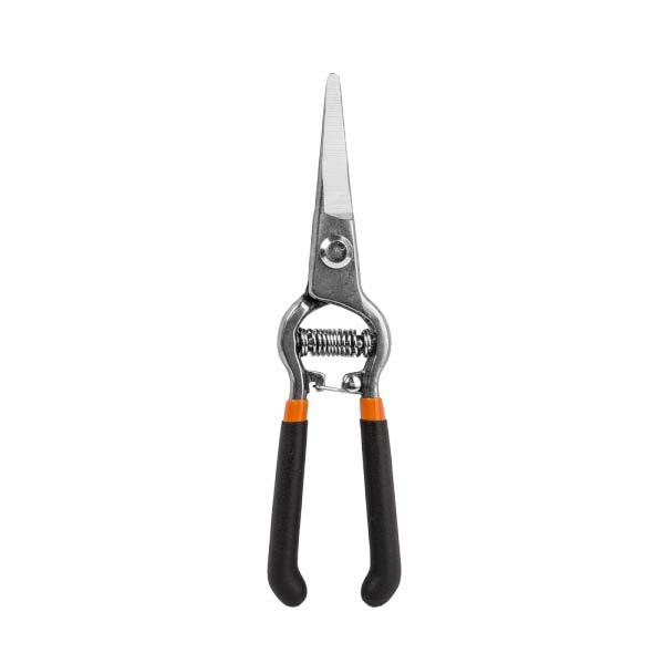 Вуглецева сталь довго тримає гостроту, вузькі леза забезпечують чистий точний зріз, а протиковзні руків’я та фіксатор під пружиною роблять роботу комфортною й безпечною навіть під час тривалого догляду за садом.
