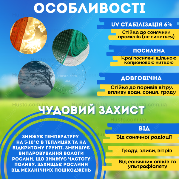 Захист рослин від сонця|Захист рослин від граду|Захист врожаю від птахів|Захист від вітру|Універсальна