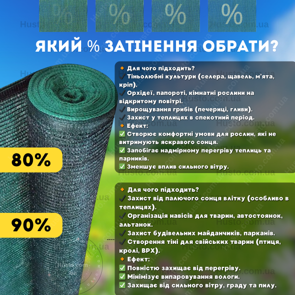 Захист рослин від сонця|Захист рослин від граду|Захист врожаю від птахів|Захист від вітру|Універсальна