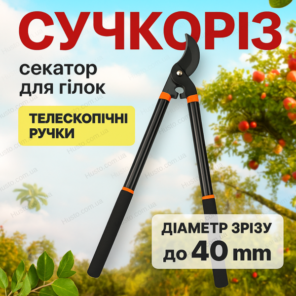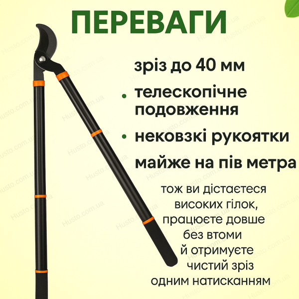 Характеристики- Тип: дворучний телескопічний сучкоріз (секатор для гілок)