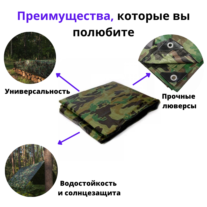 Тент камуфляж с люверсами CAMOforest 4 х 6 м 90 г/м² водостойкий